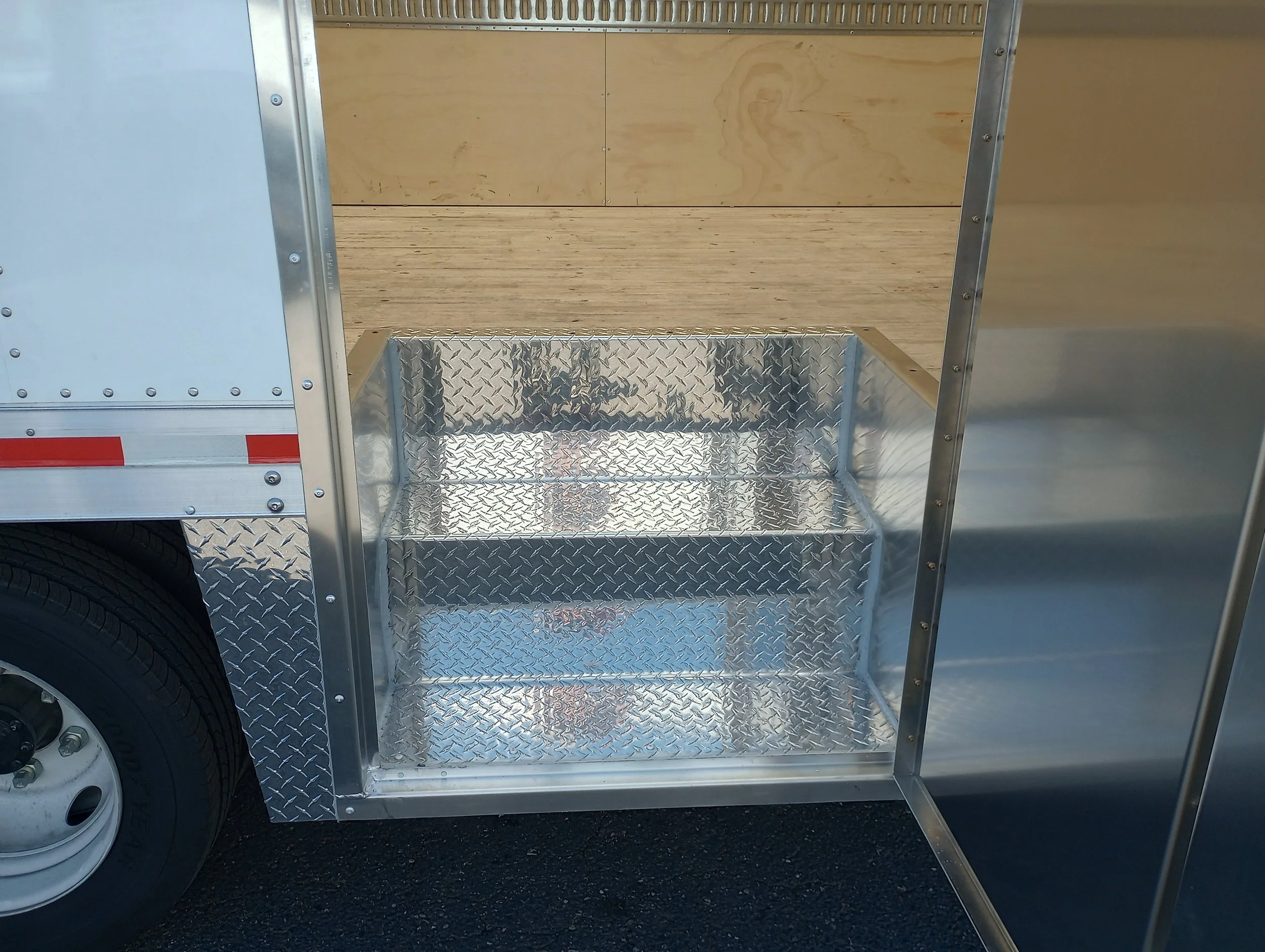 We install polished aluminum side doors with integrated aluminum step wells, providing safe and convenient entry without compromising structural integrity.
